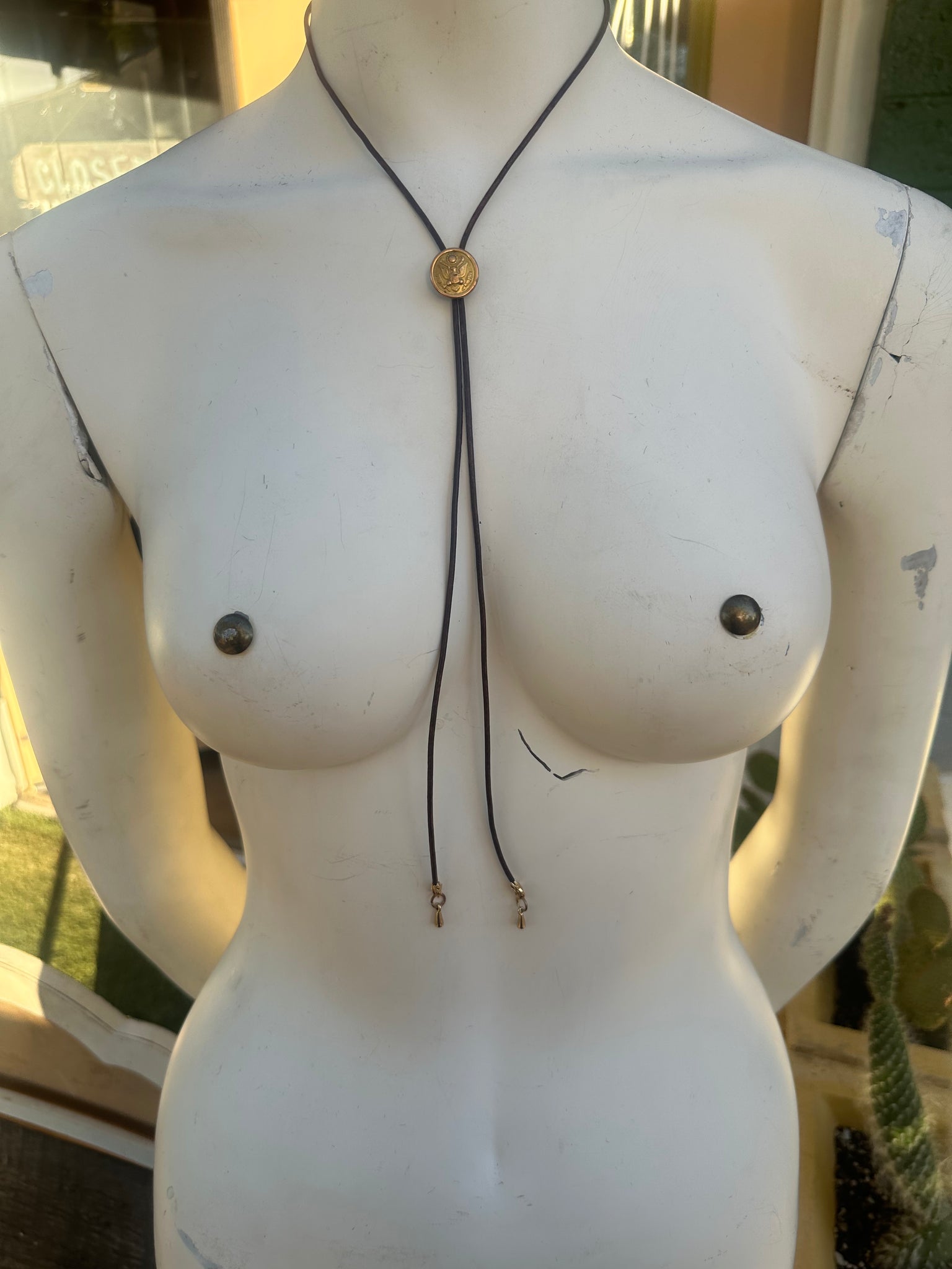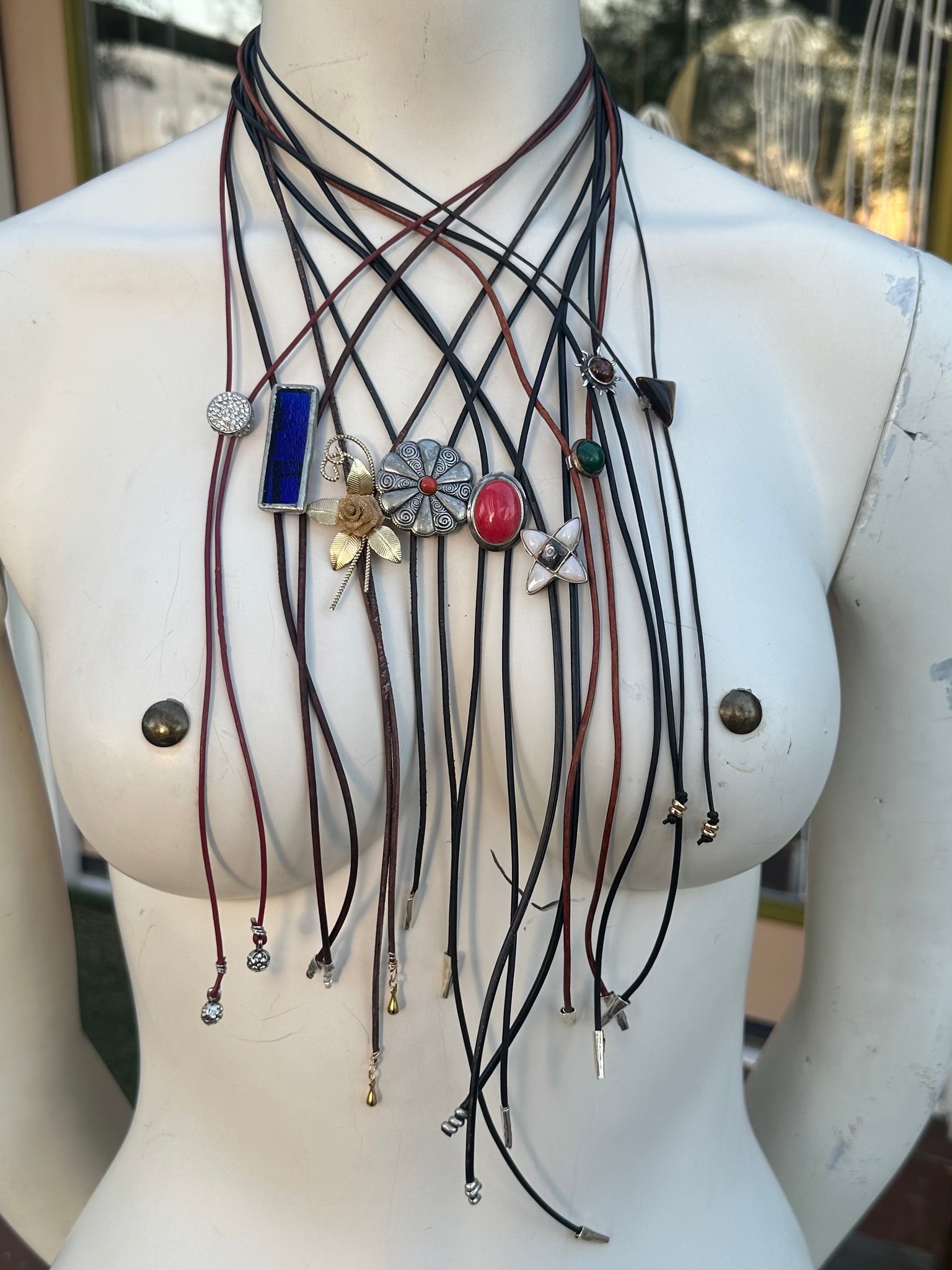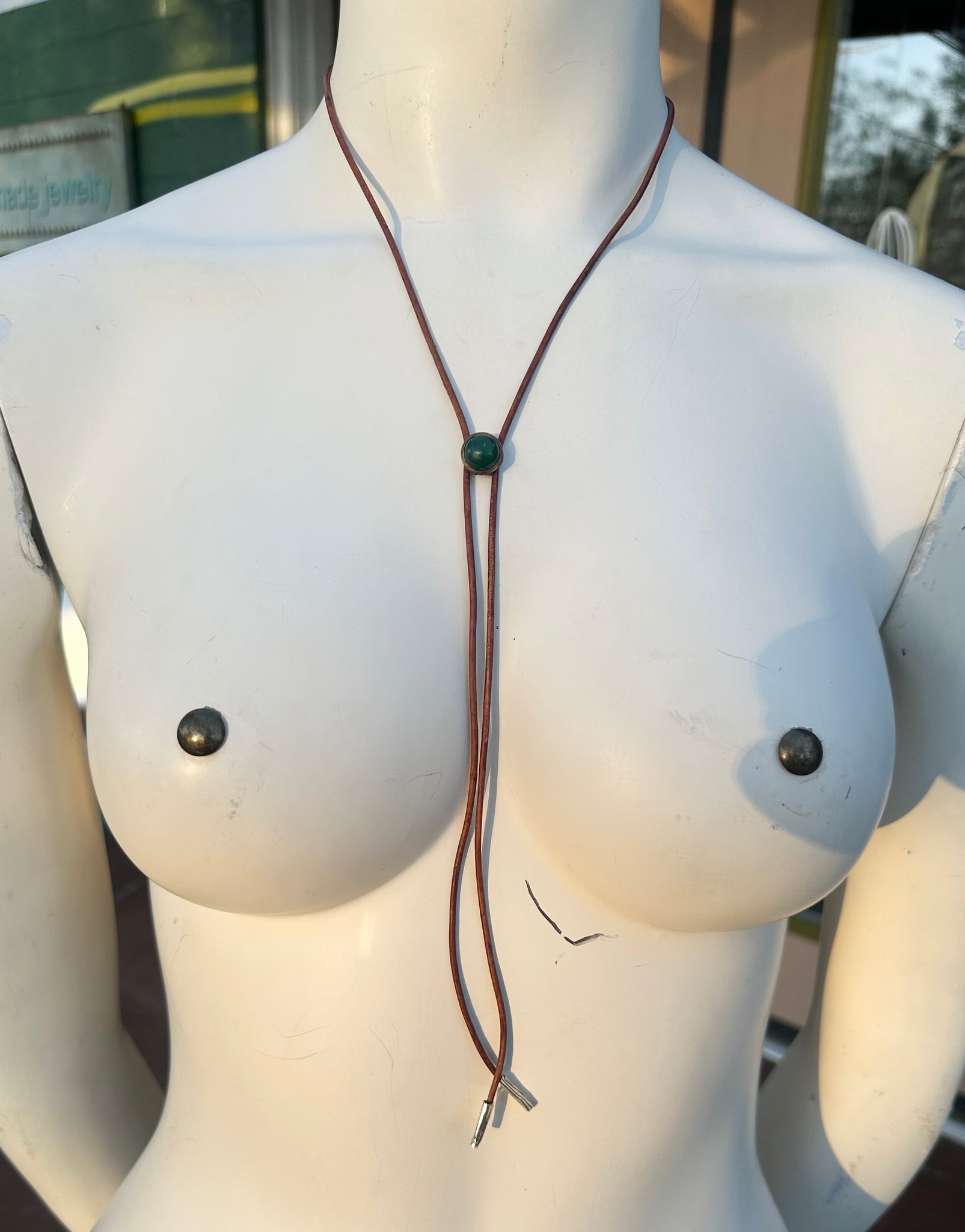 A more petite scale bolo- more like a necklace. All made with real leather.