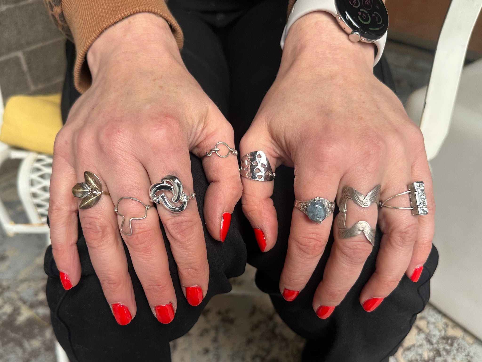 An upcycled Monet clip-on earring that is now a beautiful ring! Sterling silver back. Size 8