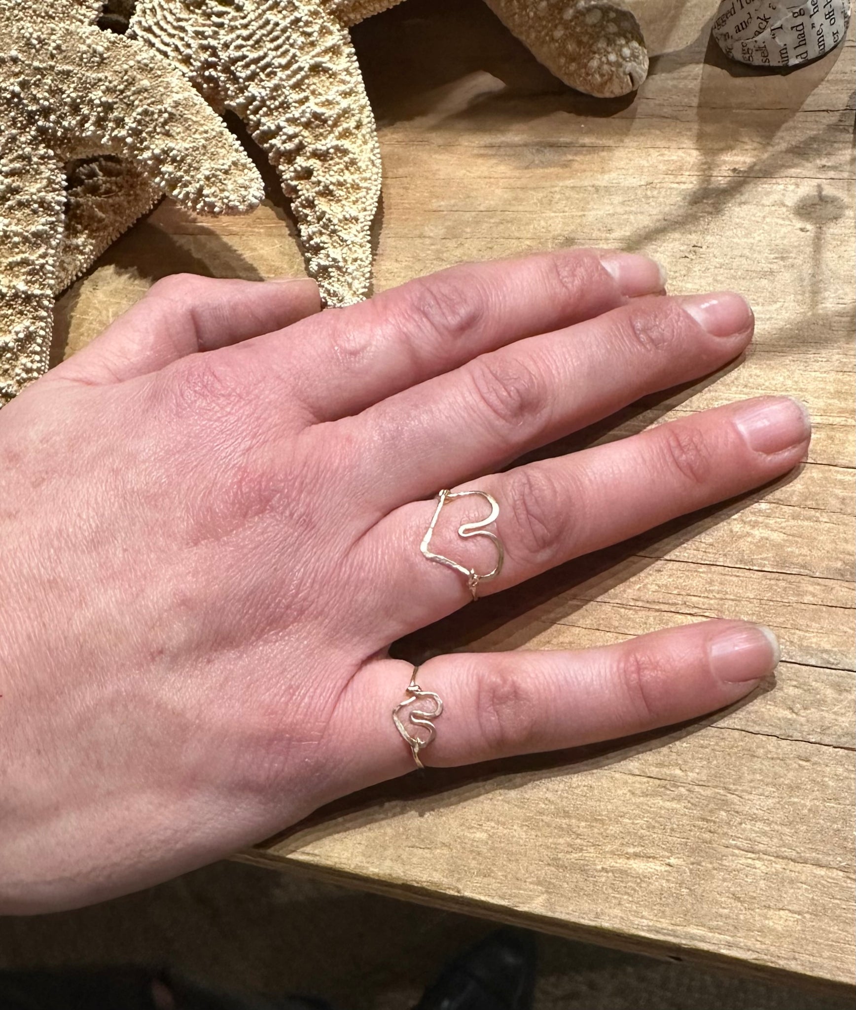Just like my OG heart ring, but tiny! All handmade and hammered 14 k goldfill wire.