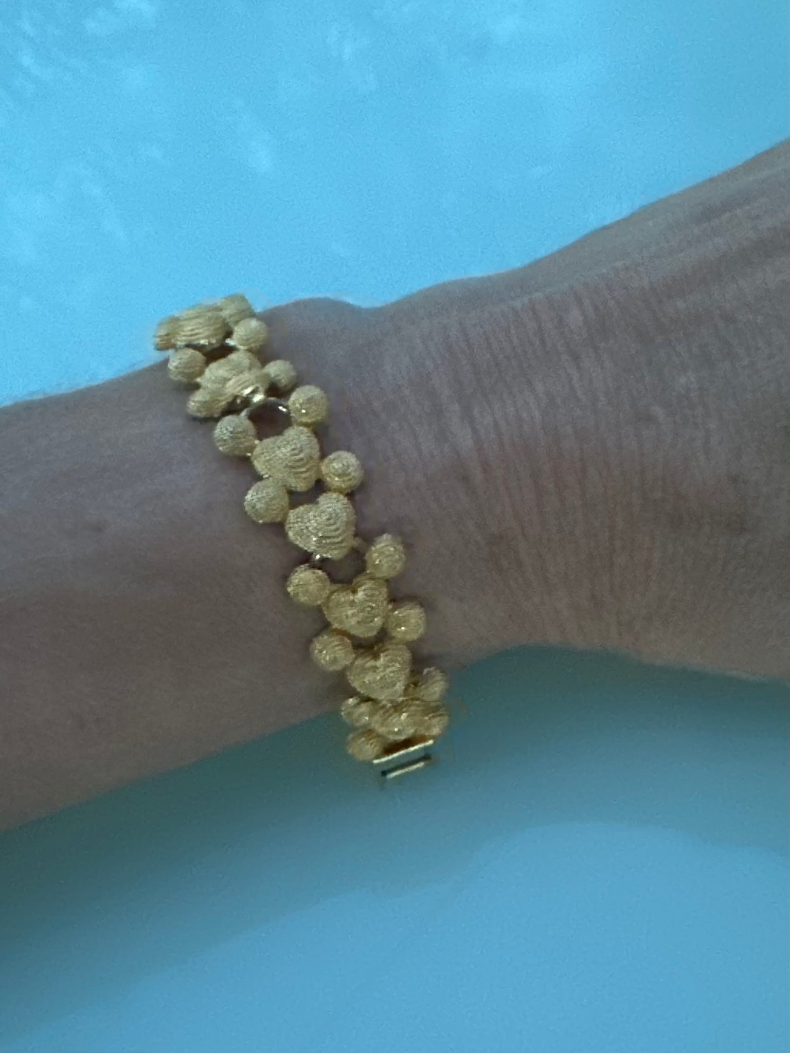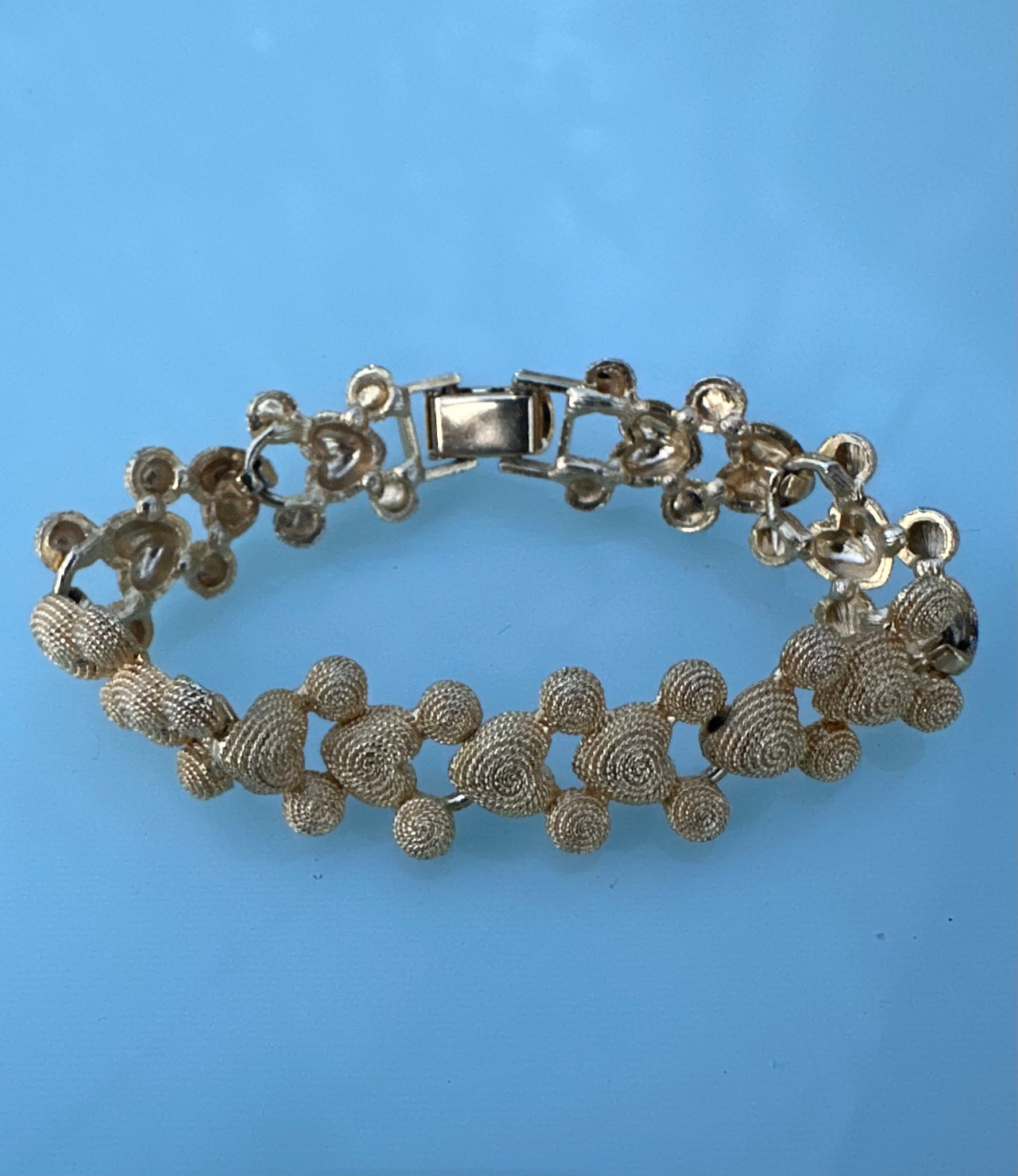 Vintage gold tone bracelet featuring classic Etruscan Revival styling.